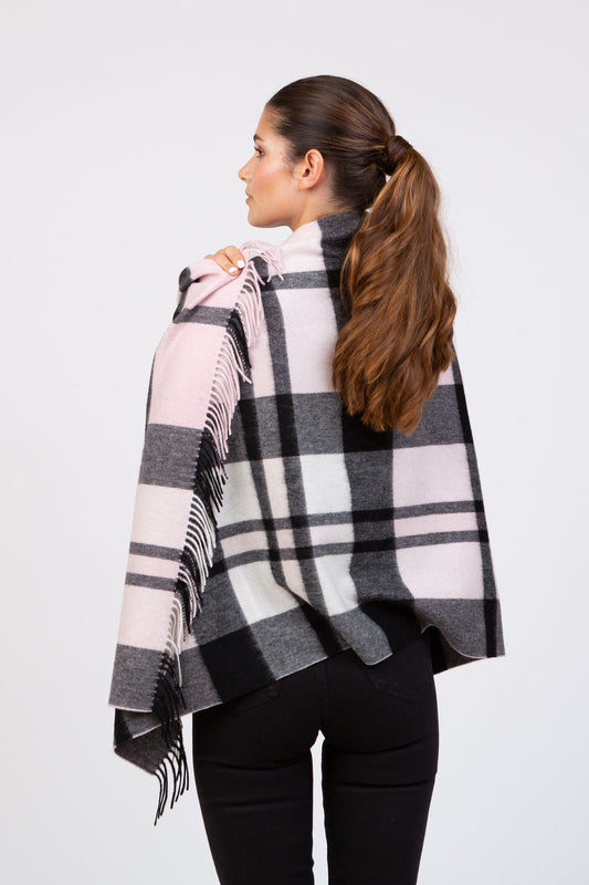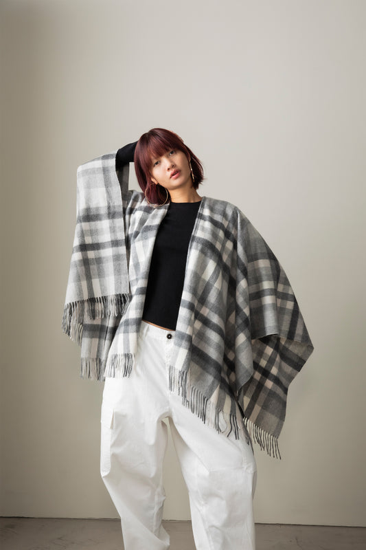 Stepping Check Cashmere Wrap - Monochrome