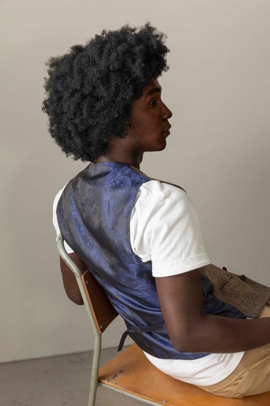 Harris Tweed Iain Waistcoat - Brown Blue Windowpane