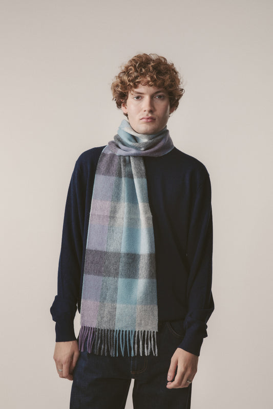 Checkers Lambswool Scarf - Grey Blue