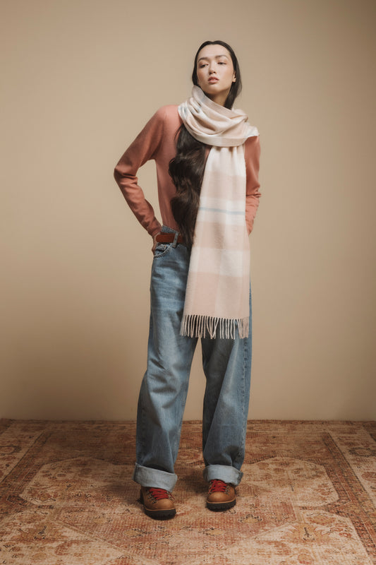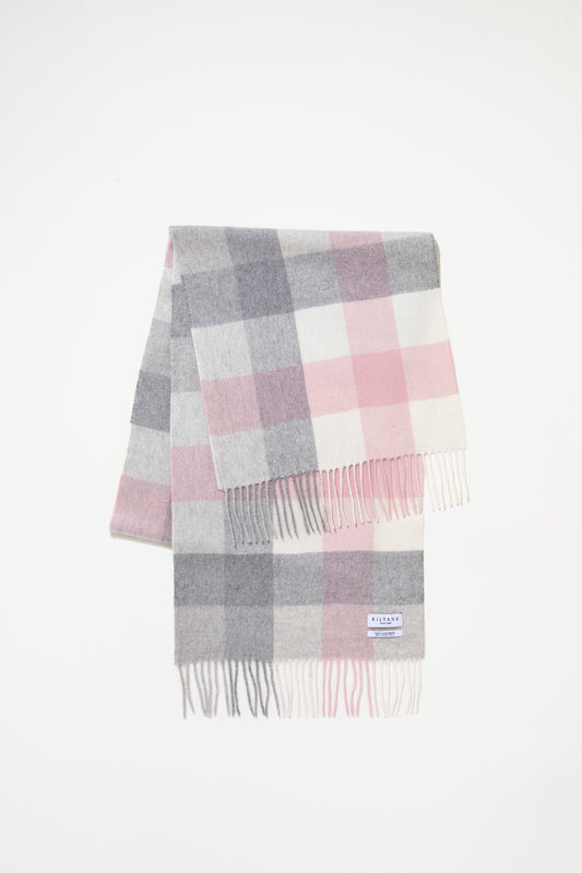 Contemporary Check Cashmere Wide Scarf - Champagne Pink