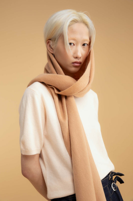 Our cashmere care instructions are simple and straightforward, and help preserve the softness of your scarves while extending their lifeline. We recommend storing them in our dust bag and using our specially designed cashmere comb to remove pilling.