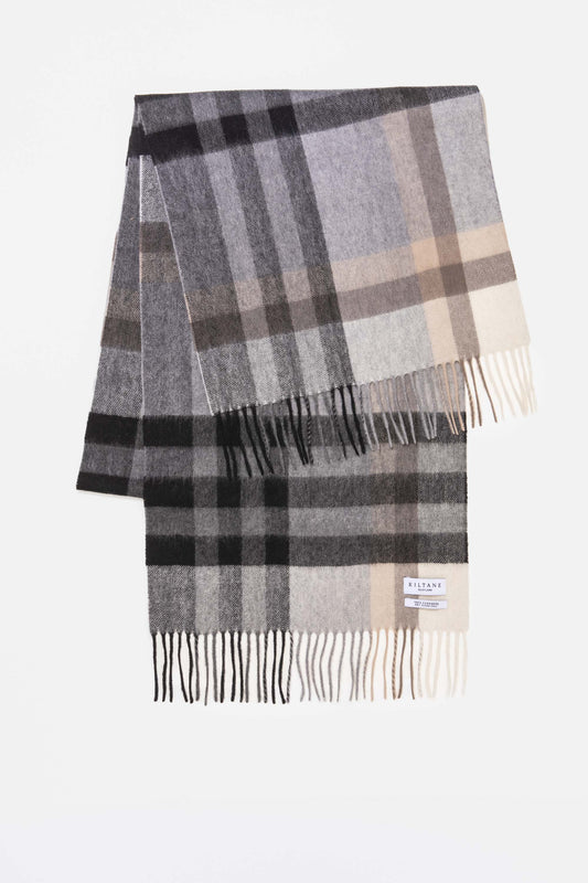 Tartan 2 Cashmere Wide Scarf - Black Grey