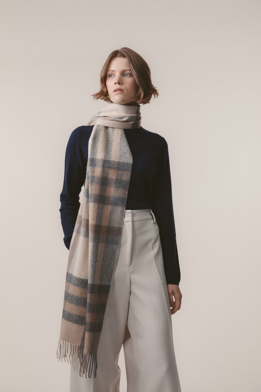Contemporary Check Cashmere Wide Scarf - Cameo Check