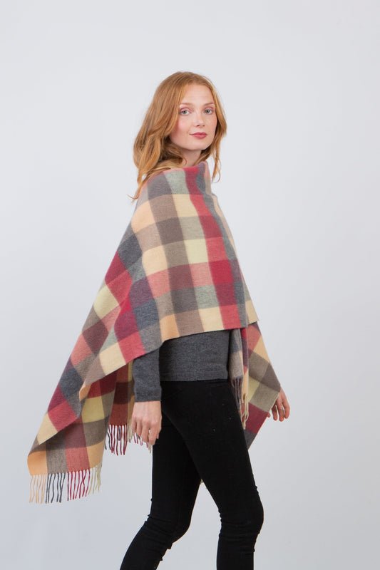 Square Check Cashmere Wrap - Orient Ginger