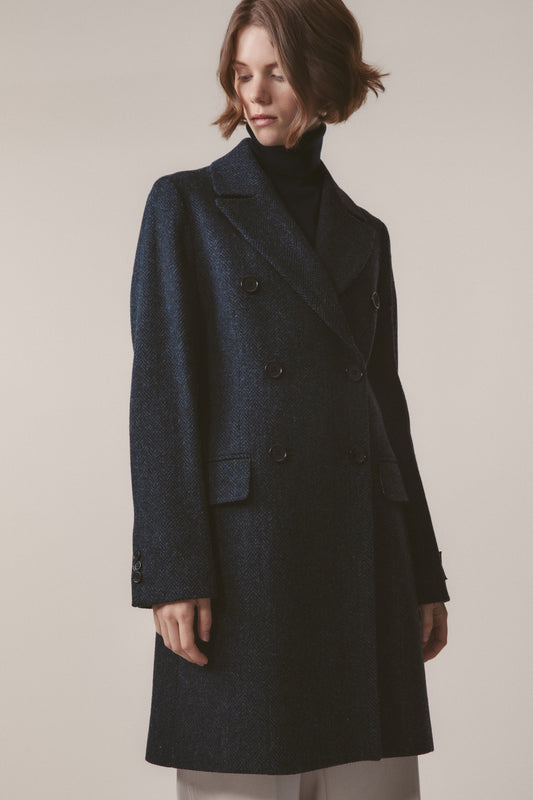 Women's Harris Tweed Melody Coat - Dark Navy Blue Herringbone