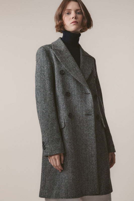 Women's Harris Tweed Melody Coat - Light Grey Herringbone