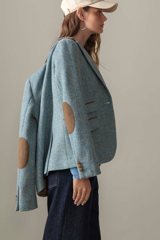 Women's Harris Tweed Claire Blazer - Light Blue Herringbone Mix