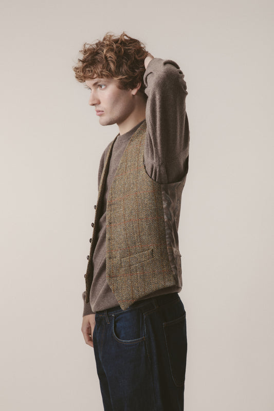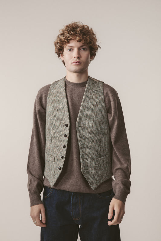 Harris Tweed Iain Waistcoat - Green Lovat Herringbone