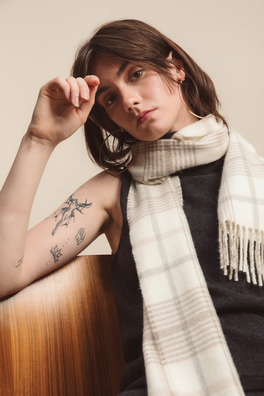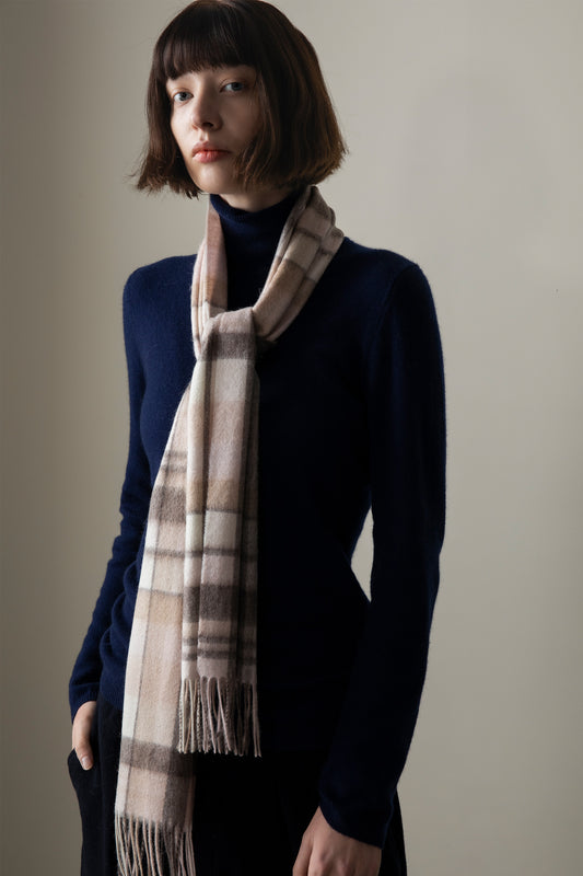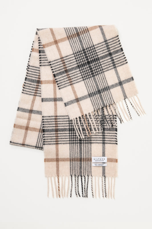 Made in Scotland Lambswool Scarf - Fingask Check Sandstone