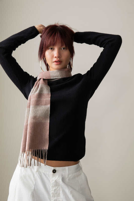 Contemporary Check Lambswool Scarf - Champagne Pink