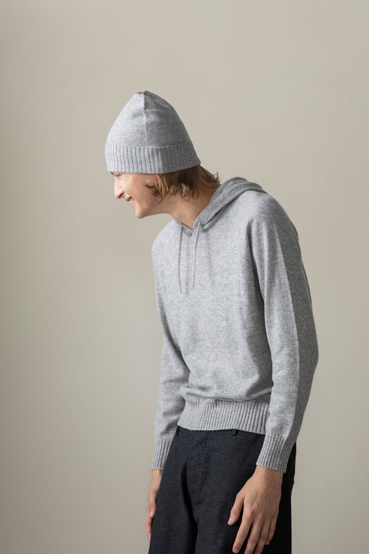 Unisex Cashmere Wide Ribbed Beanie Hat - Derby Grey