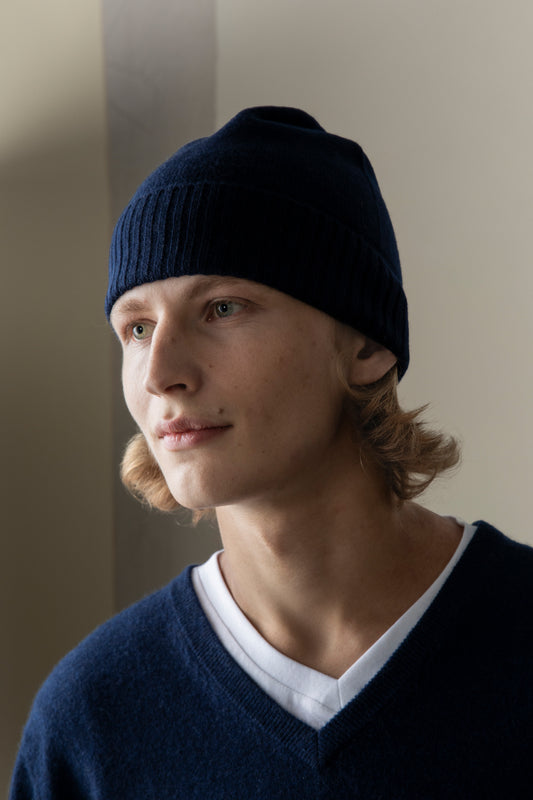 Cashmere Cable Beanie - Dark Navy