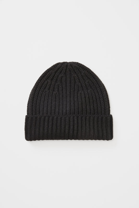 Fisherman Ribbed Cashmere Beanie - Black