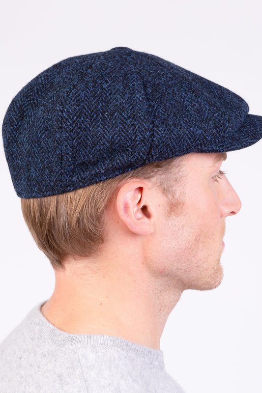 Harris Tweed Stornoway Cap - Dark Navy Herringbone