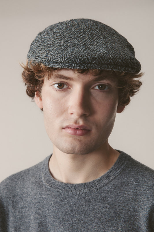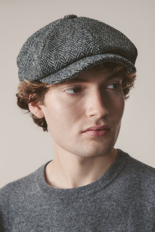 Harris Tweed Stornoway Cap - Charcoal Herringbone