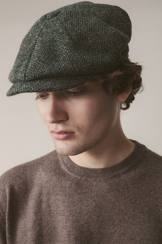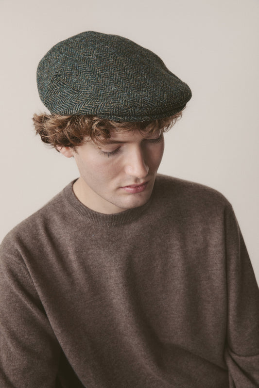 Harris Tweed Stornoway Cap - Dark Green Herringbone