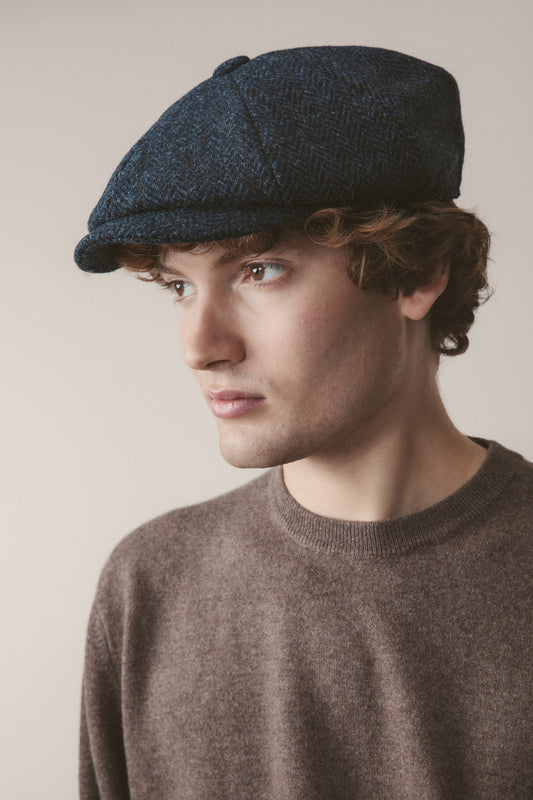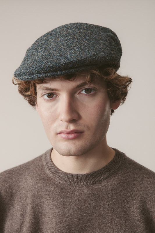 Harris Tweed Stornoway Cap - Blue Mix Herringbone