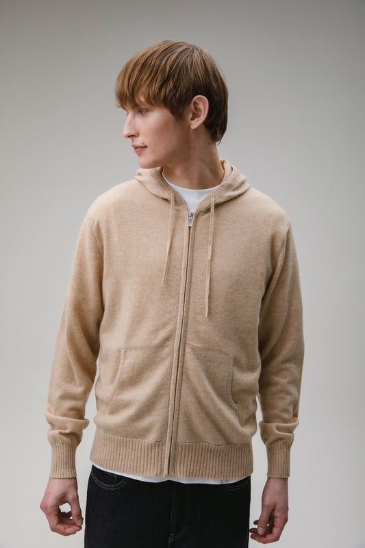 Unisex Cashmere Zip Hoodie - Vicuna