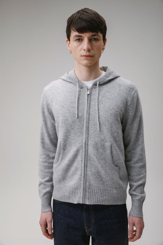 Unisex Cashmere Zip Hoodie - Light Grey