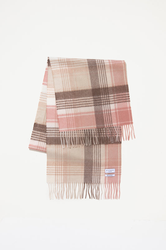 Contemporary Check Cashmere Wide Scarf - Champagne Pink