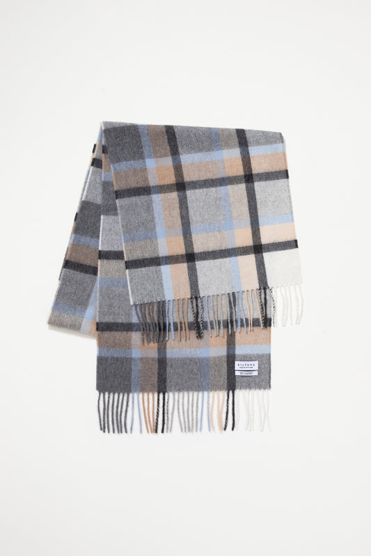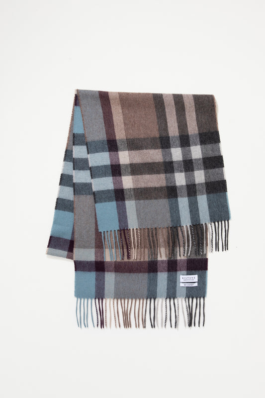 Made in Scotland Tartan 2 Cashmere Wide Scarf - Blue Taupe