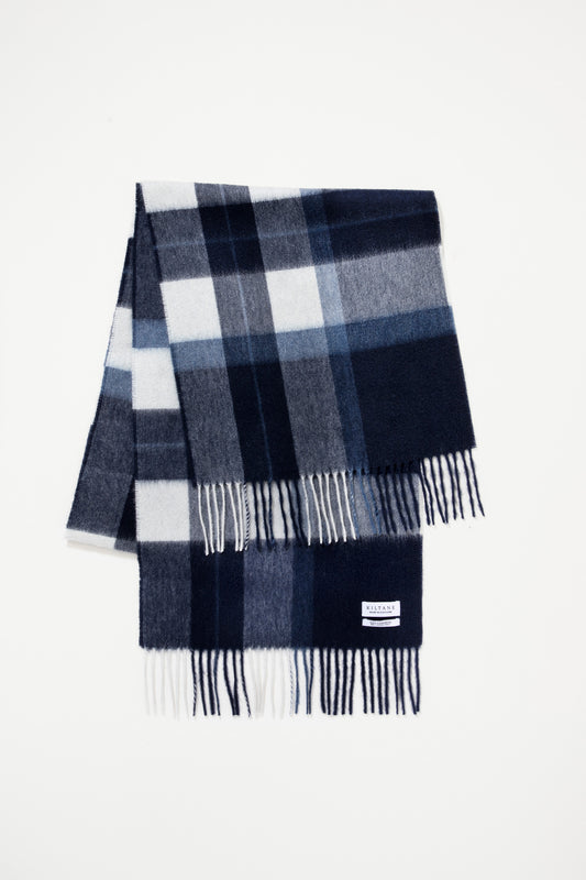 Made in Scotland Contemporary Check Cashmere Wide Scarf - Chatham Navy
