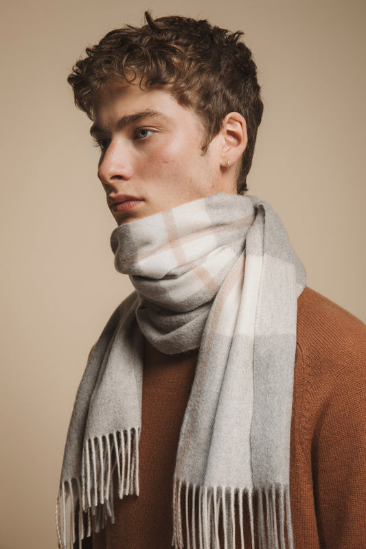 Contemporary Check Cashmere Wide Scarf - Grey Plaid Check
