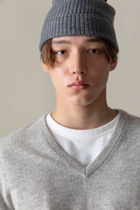 Unisex Cashmere Ribbed Beanie Hat - Brume