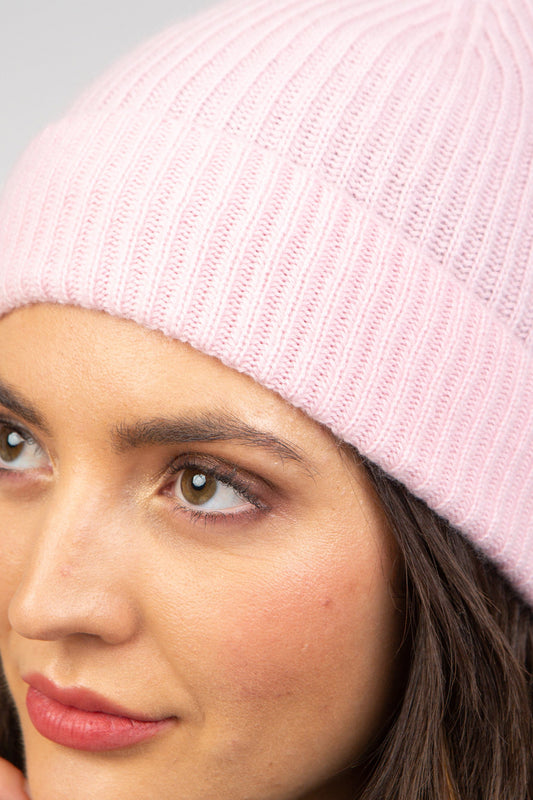 Unisex Cashmere Ribbed Beanie Hat - Baby Pink