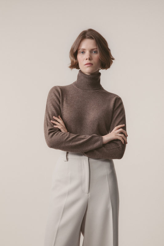 Women's Cashmere Polo Neck Jumper - Vicuna