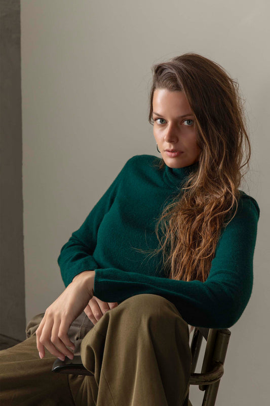 Women's Cashmere Polo Neck Jumper - Forest Green
