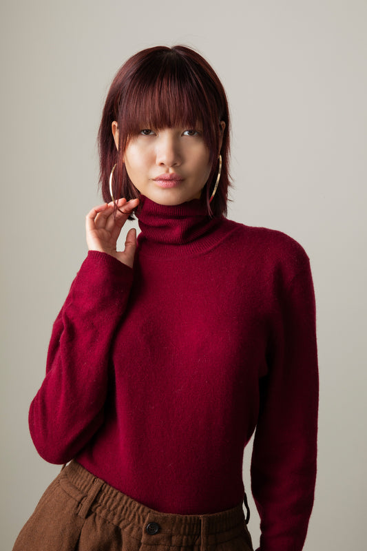 Women's Cashmere Polo Neck Jumper - Bordeaux