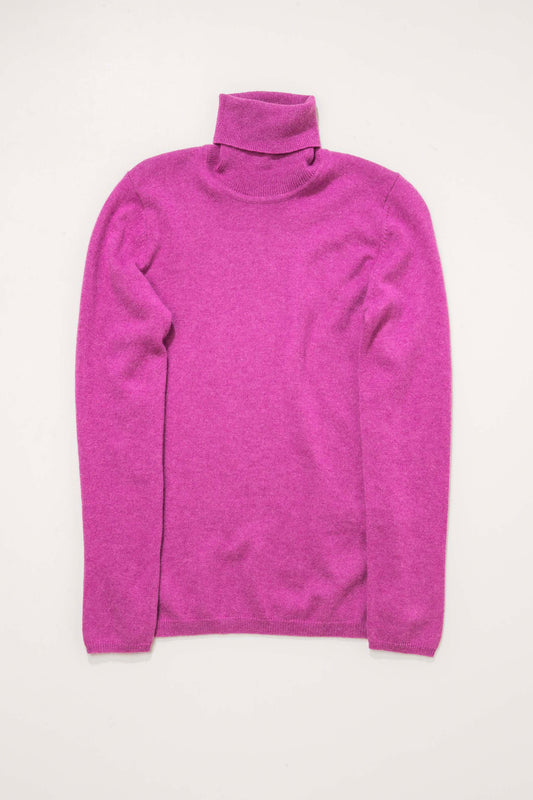 Women's Cashmere Polo Neck Jumper - Raspberry