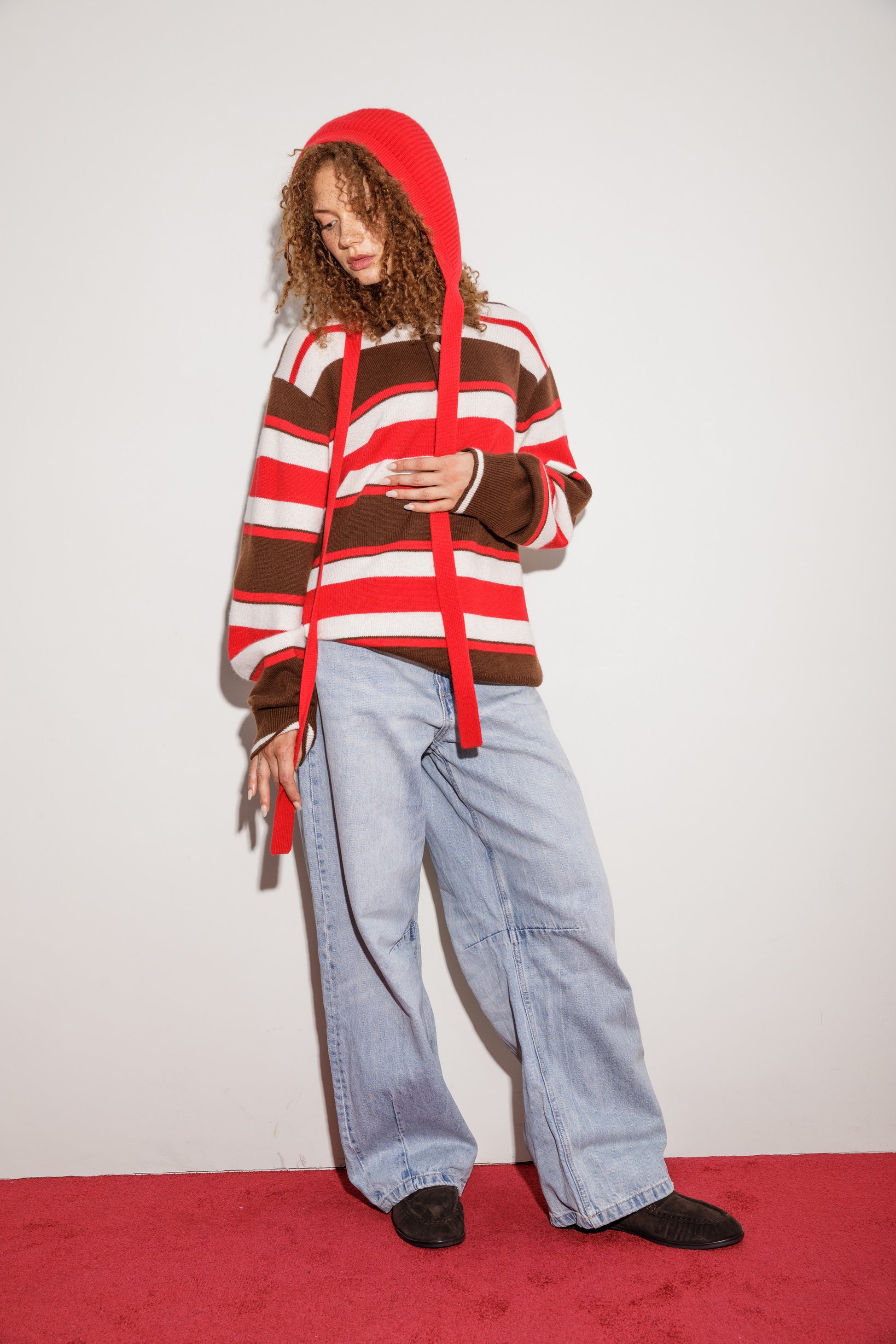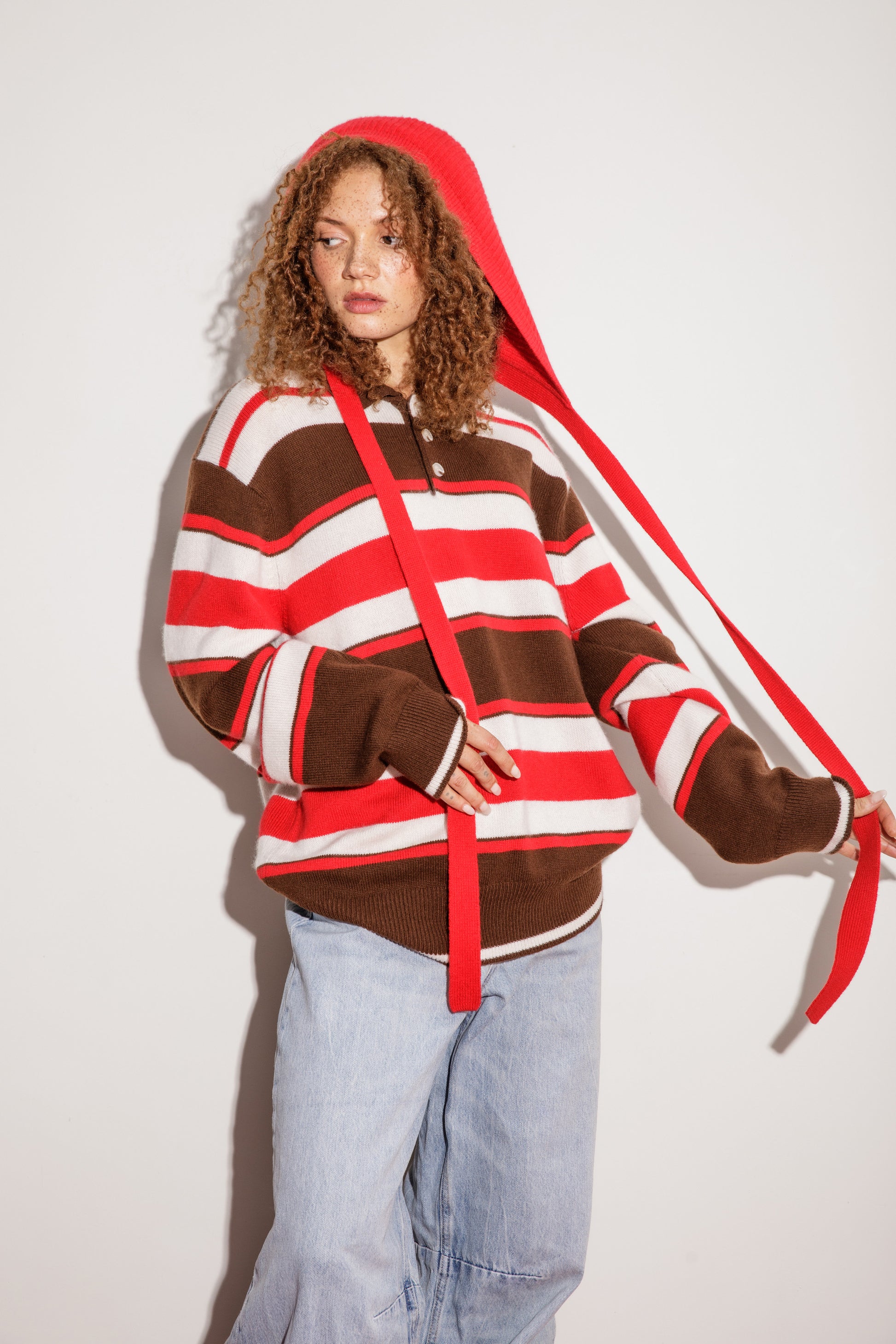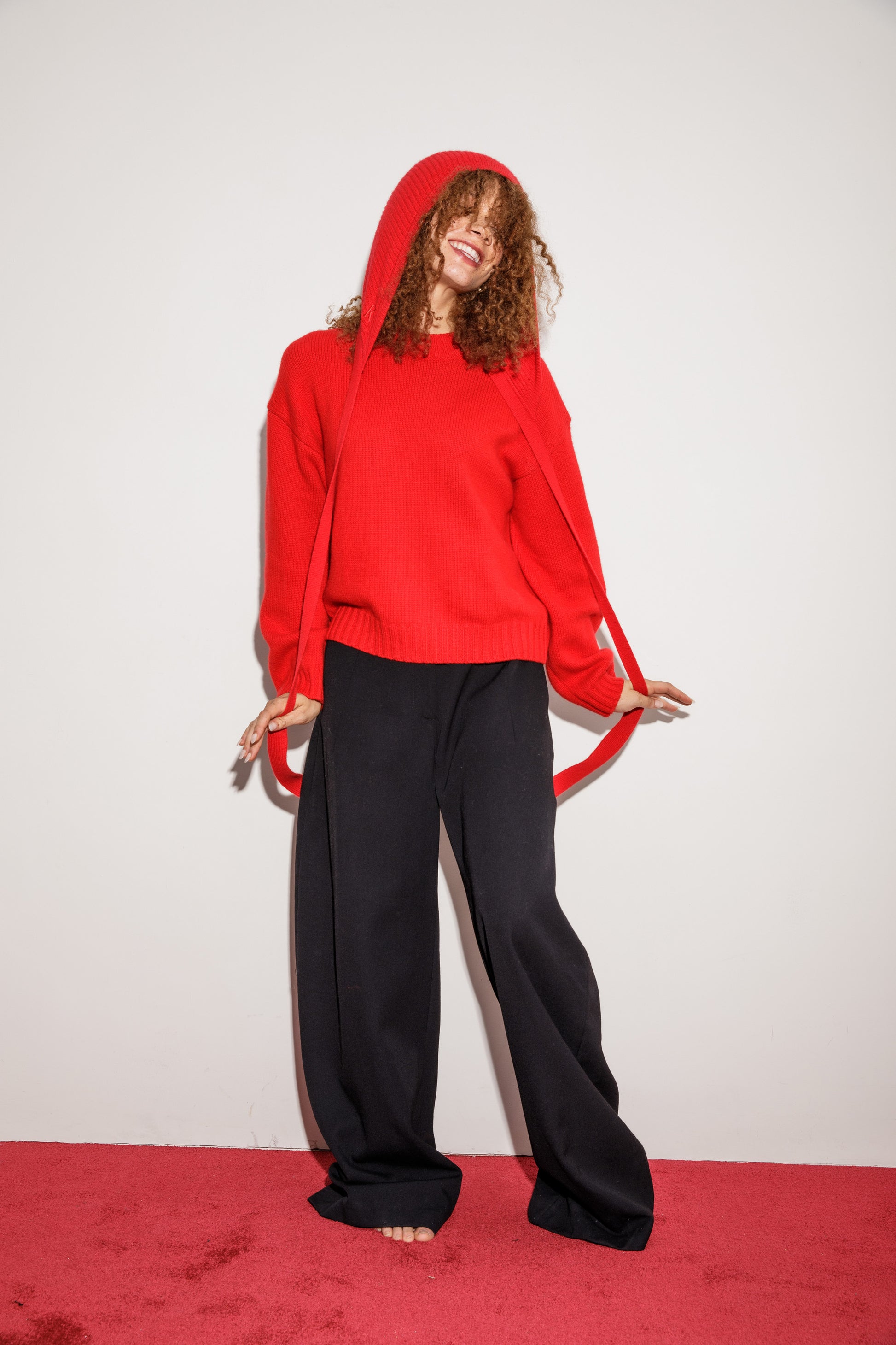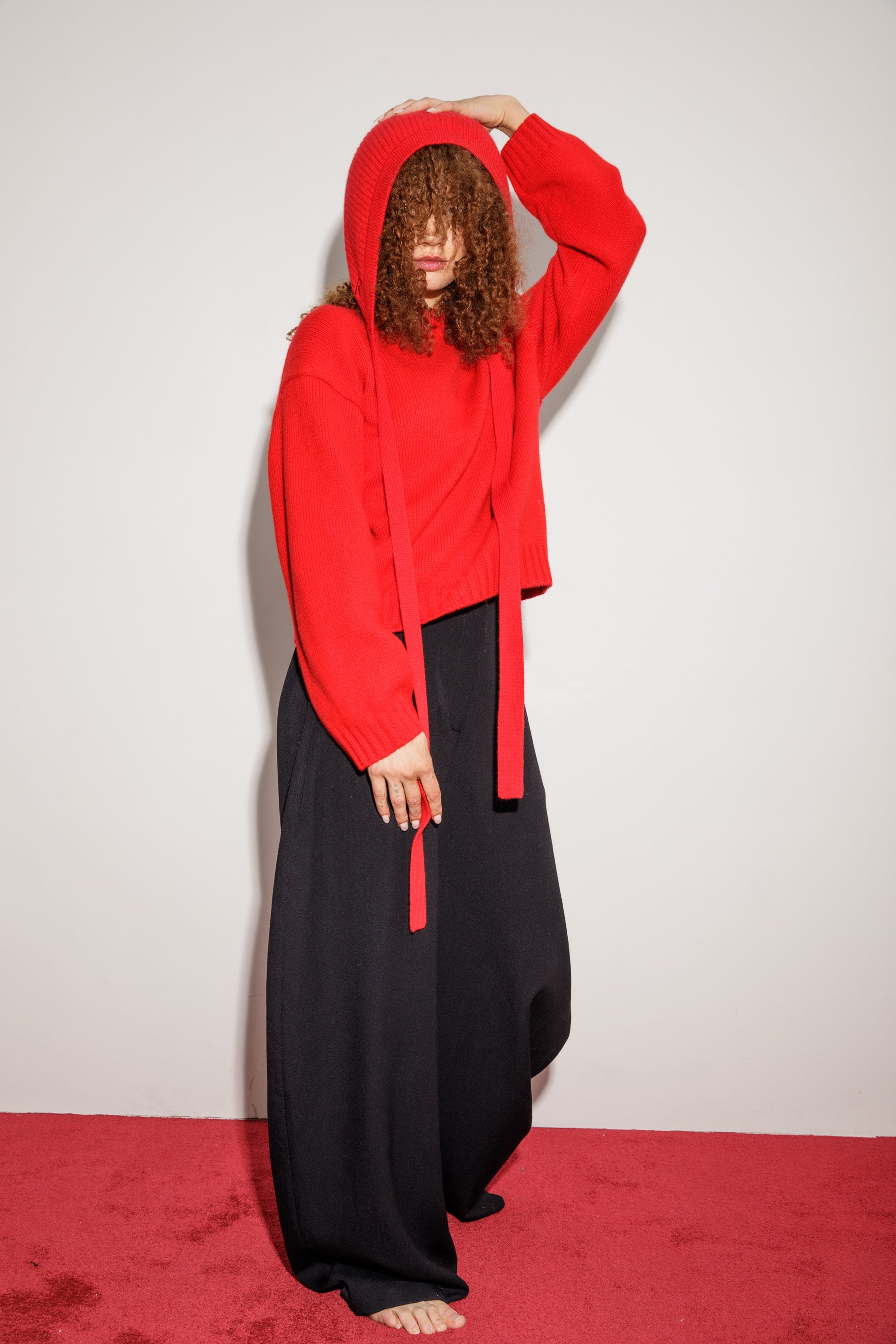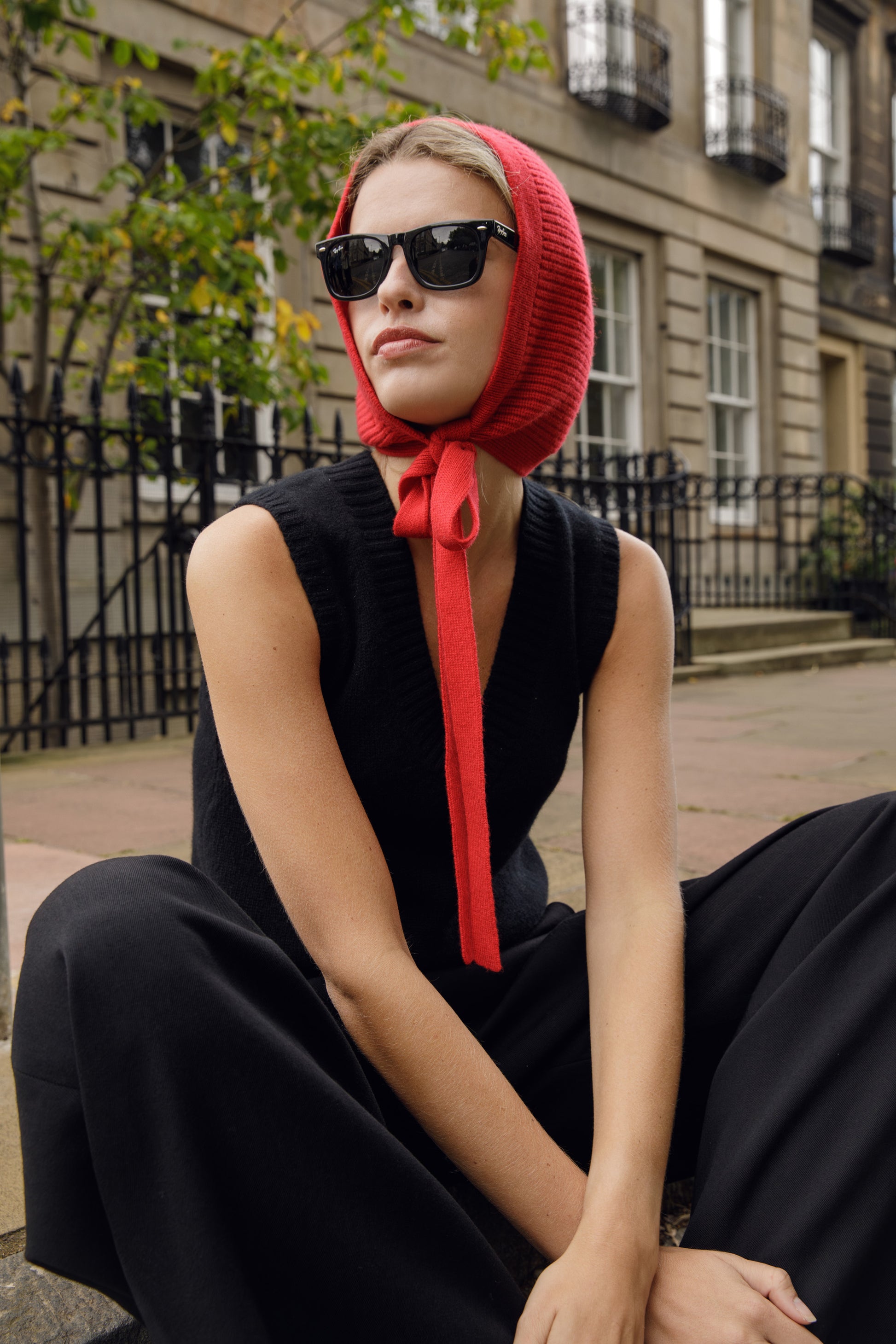 - The Knitted Cashmere Bonnet Red pairs well with our