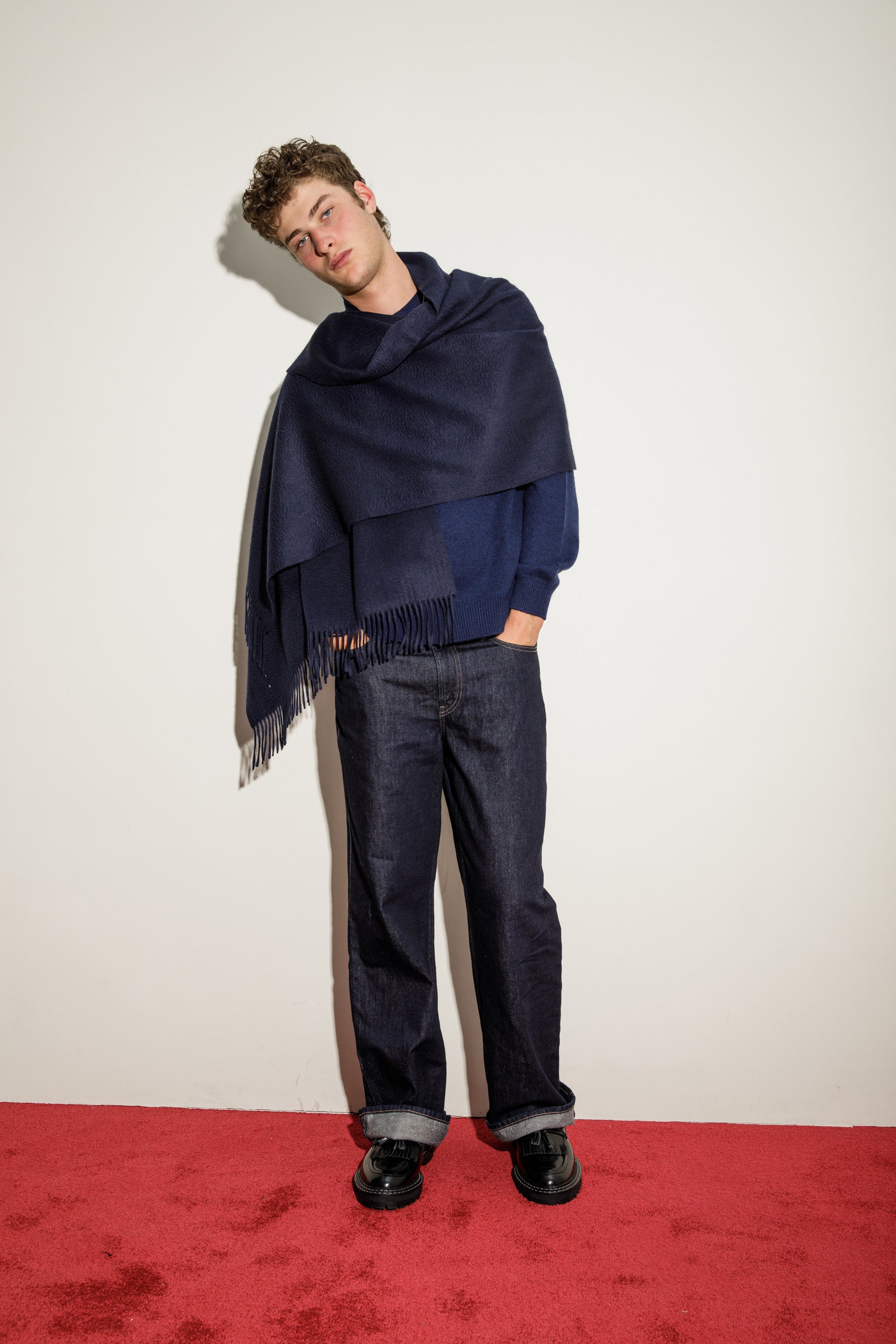 - The Solid Cashmere Stole Dark Navy pairs well with our