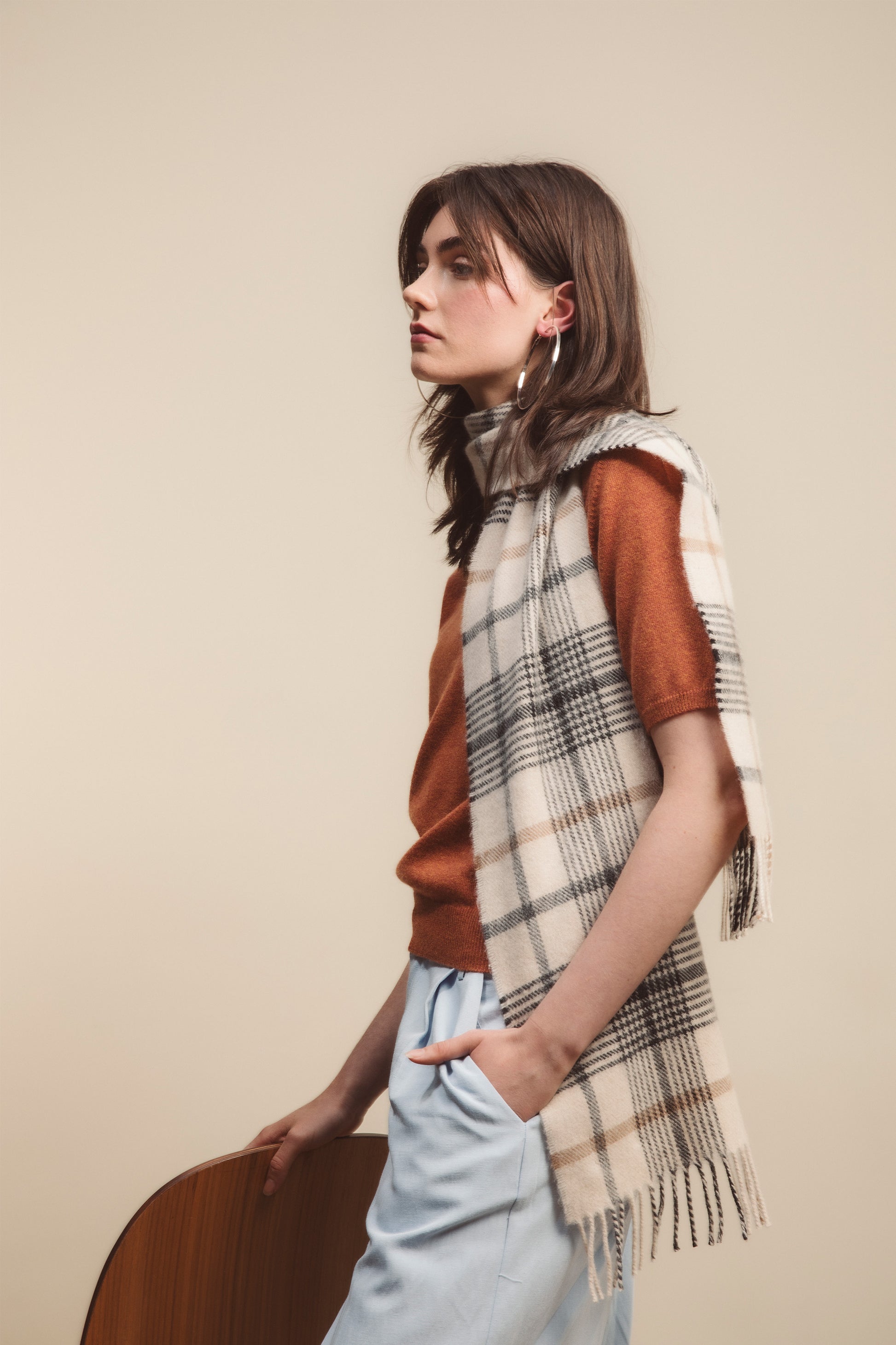 Made in Scotland Lambswool Scarf - Fingask Check Mouflon