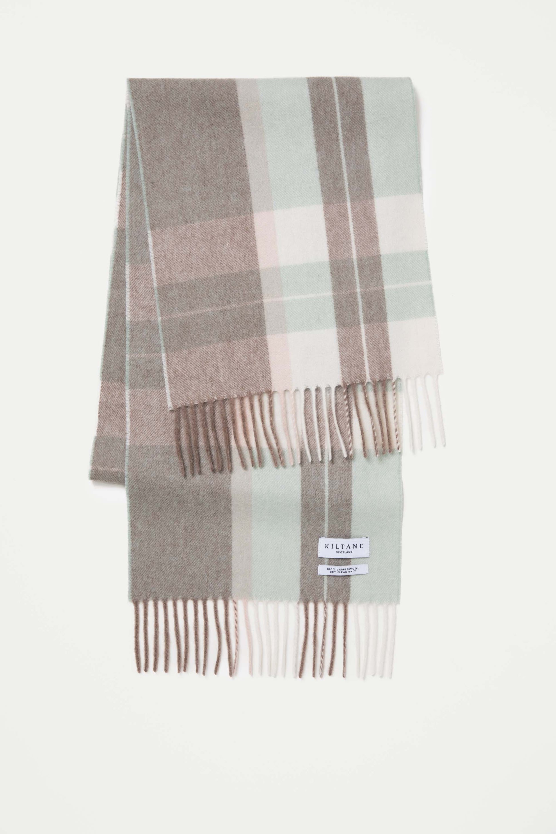 - The Contemporary Check Lambswool Scarf Seafoam pairs well with our
