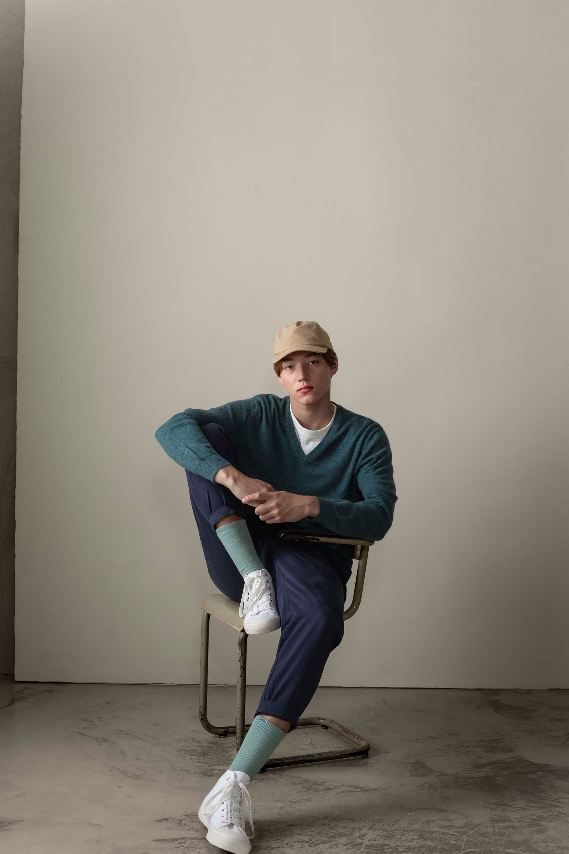 Men's Cashmere V Neck Jumper - Haze Green - Size Guide