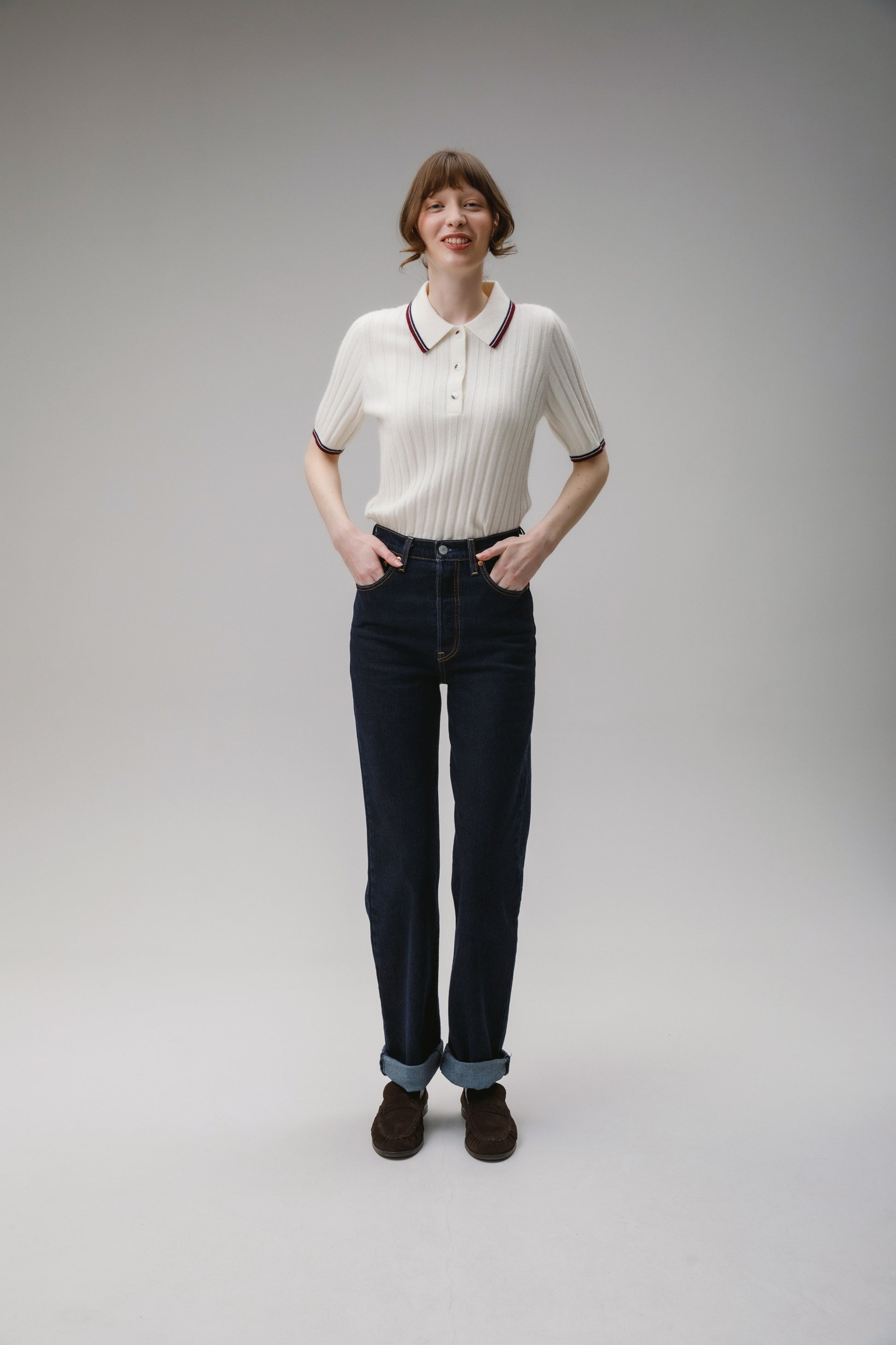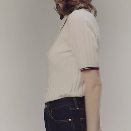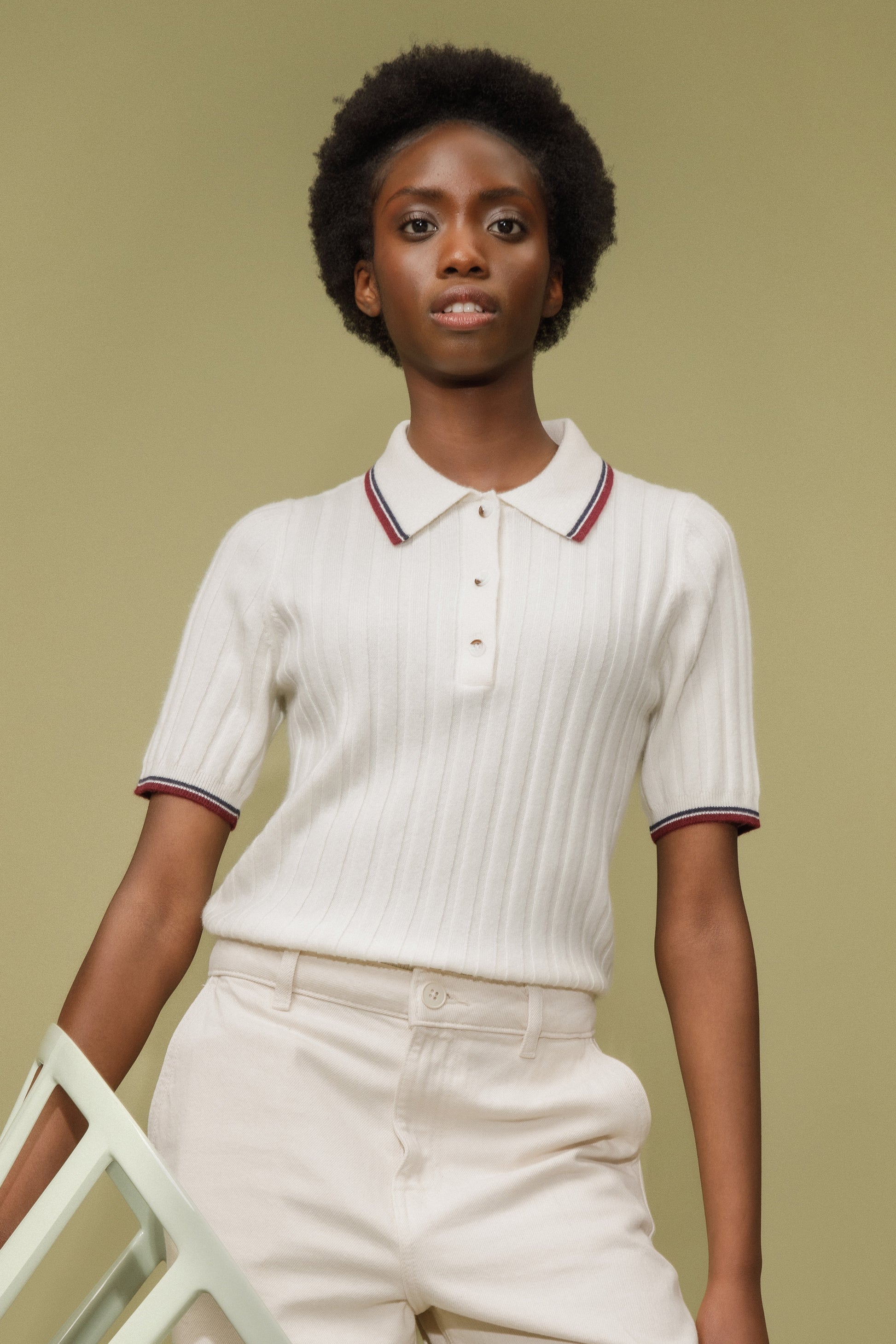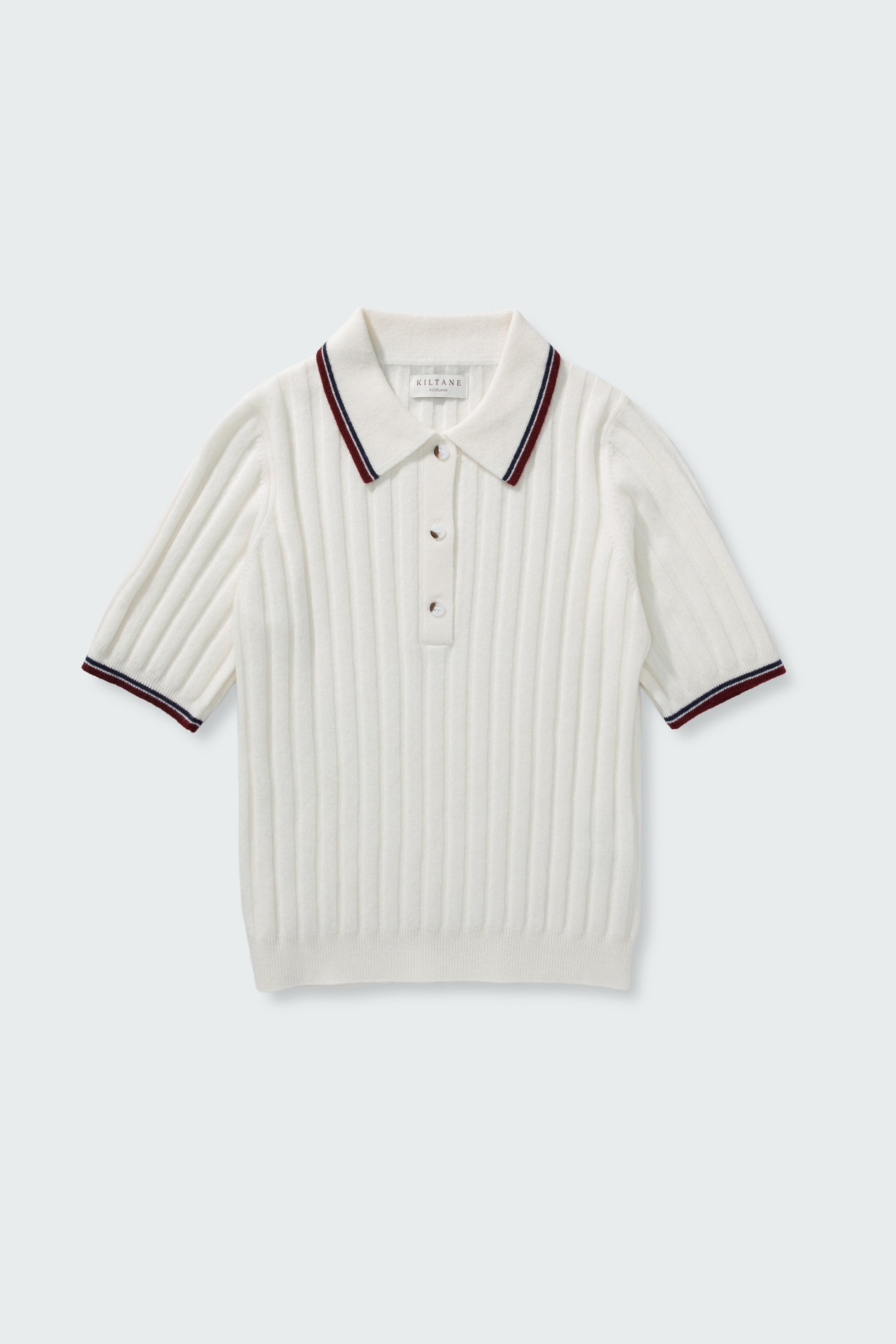 Ribbed Knit Cashmere Polo - Off White - Size Guide