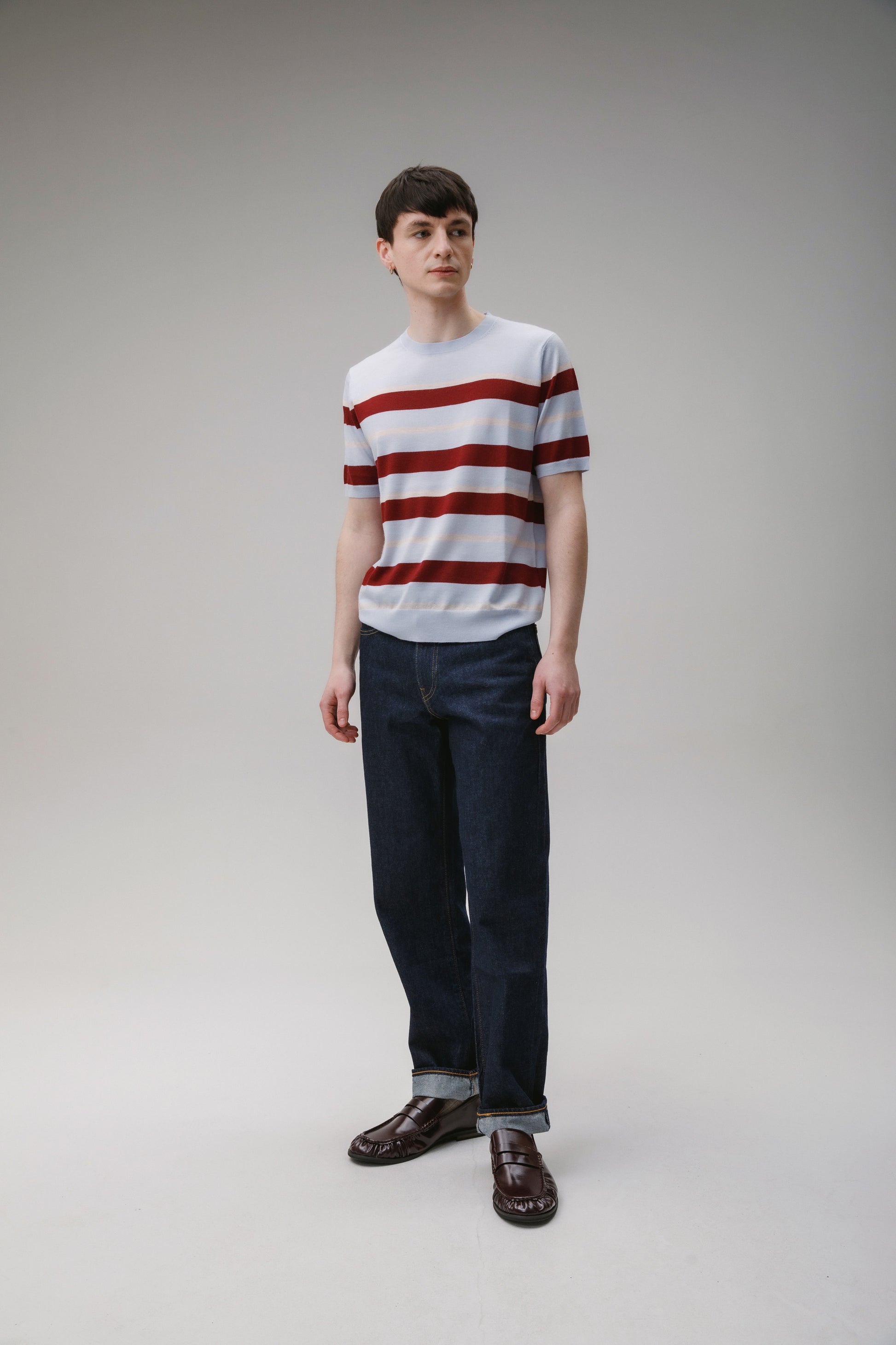 Stockbridge Stripe Cashmere T-Shirt - Pale Blue - Size Guide