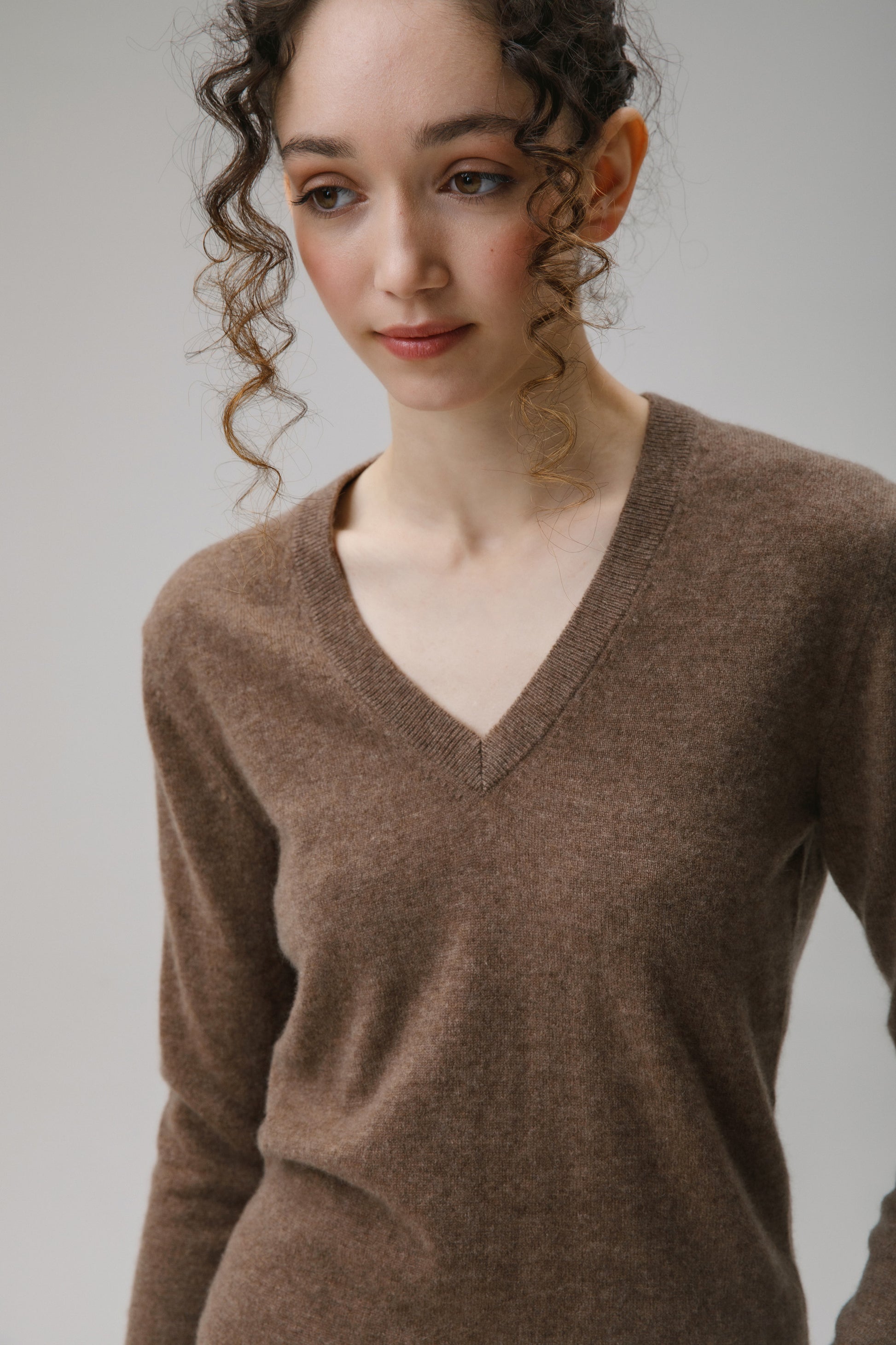 Women's Cashmere V Neck Jumper - Squirrel - Size Guide
