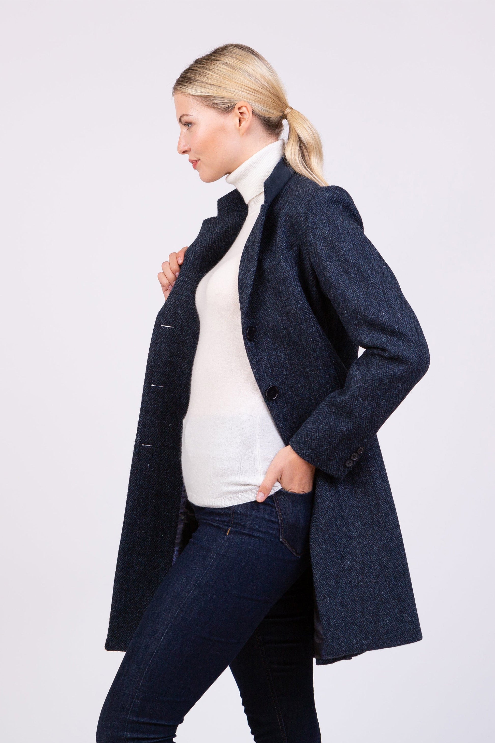 - The Women's Harris Tweed Tori Coat Dark Navy Blue Herringbone pairs well with our