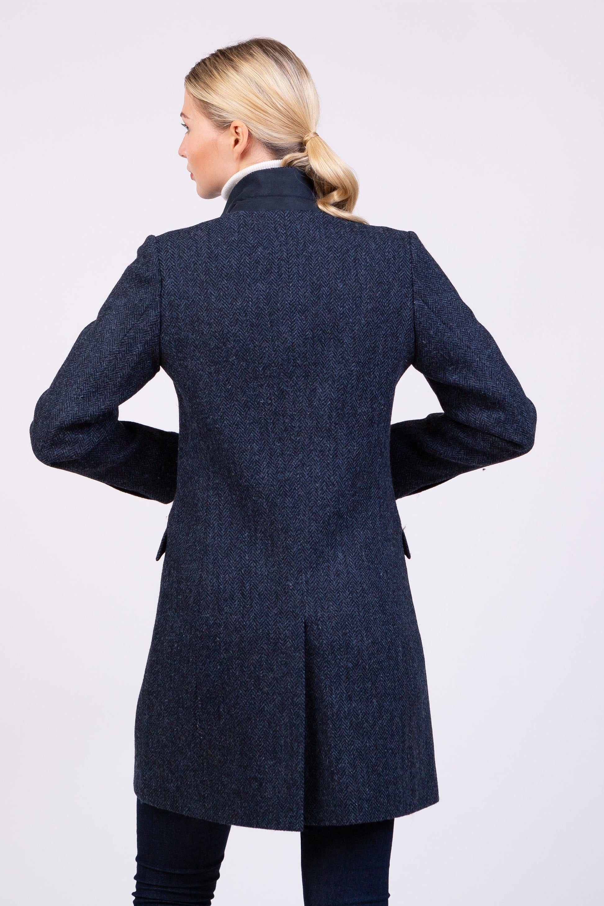 Women's Harris Tweed Tori Coat - Dark Navy Blue Herringbone